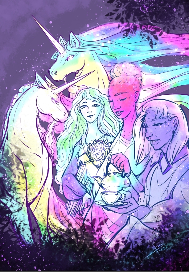Women and Unicorns on shimmer cardstock. Unicorns and rainbows included.